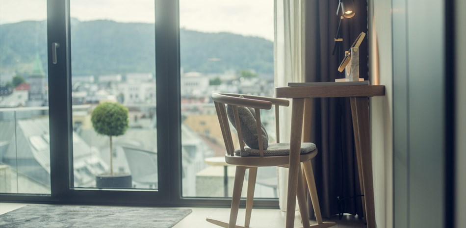 Våre 415 nye og lekre hotellrom har høy kvalitet og svært god standard og består av moderne, stilfullt nordisk design. Her er det mange særegne detaljer og ikke minst flotte vinduer fra gulv til tak som inviterer fjellene, naturen og bymiljøet inn. Vi kan også tilby egne utsikts rom (view room) mot Lille Lungegaardsvann samt egne balkong rom (balcony room).