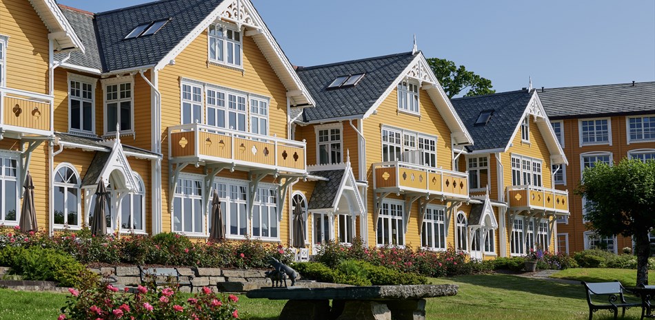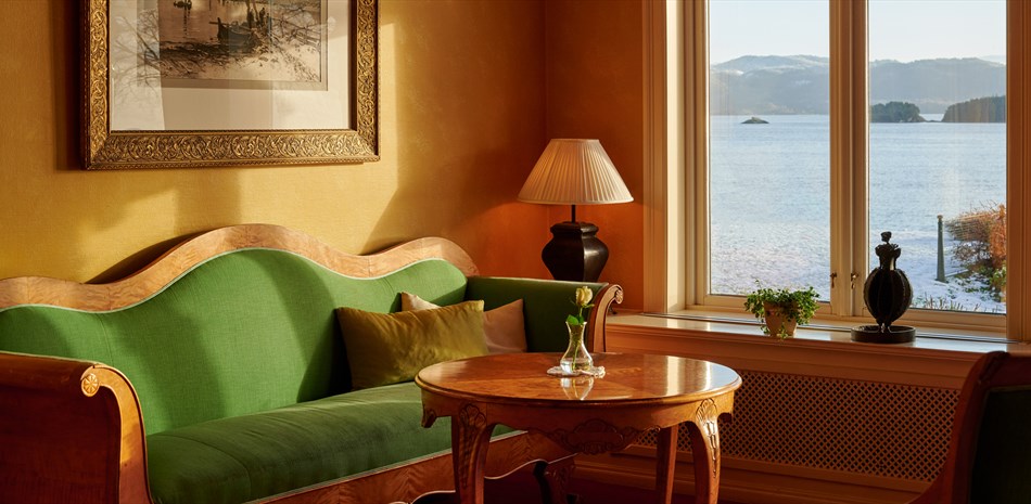 Våre standard dobbeltrom - 20-24 kvm - har alle individuell dekor og twin-senger. Standardrom med fjordutsikt er 30-32 kvm og har også twin-senger.