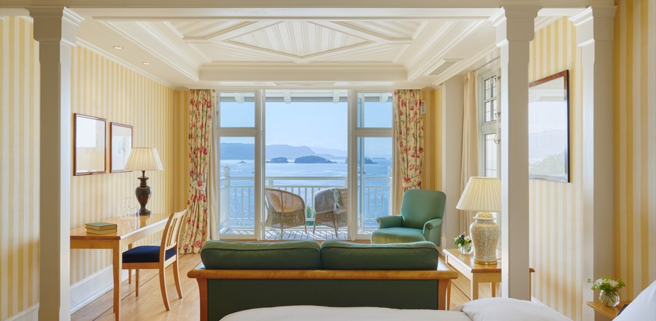 På Solstrand tilbyr vi våre gjester ulike typer standardrom, enten med eller uten utsikt, i tillegg til større junior-suiter og hjørnerom med balkong og 180 graders utsikt.