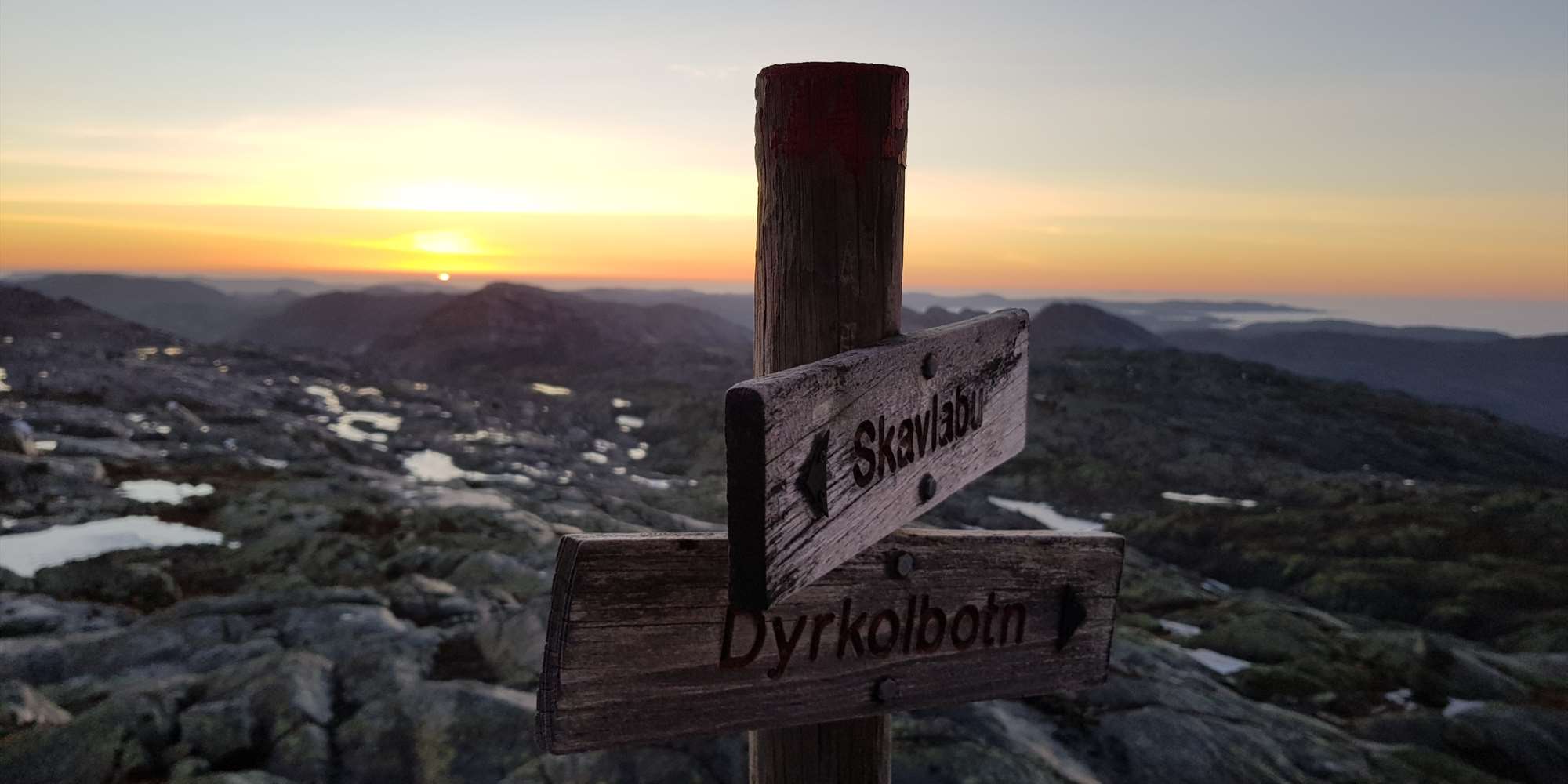 - Alver: Startpunkt ved E39 Dyrkolbotn. Krevende tursti, 16 km. 800 meter stigning fra skogsterreng til høyfjell. 8 timers gangtid uten pause. ut.no/rutebeskrivelse/136081/fra-dyrkolbotn-til-skavlabu
