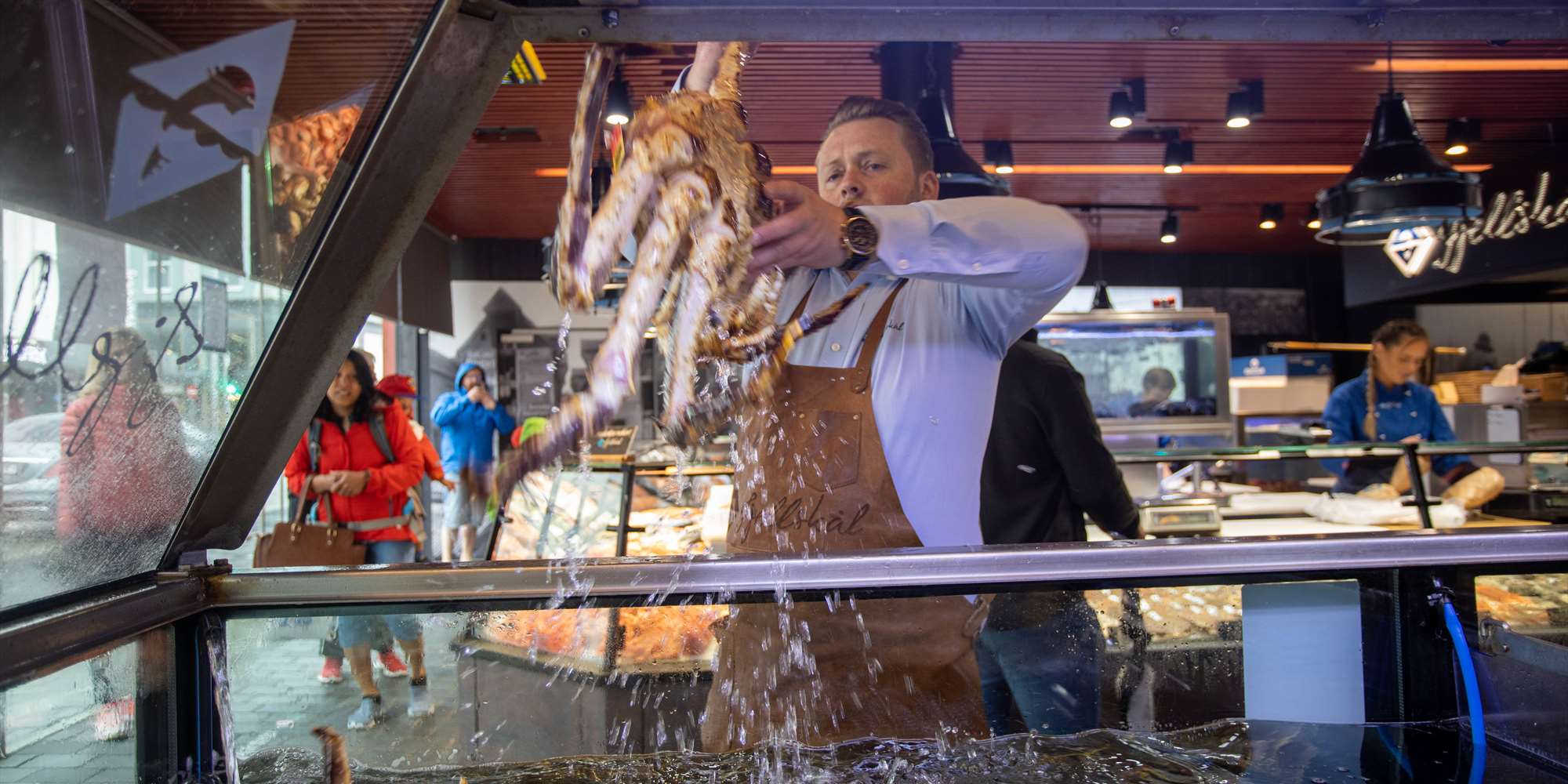 Torget i Bergen er et av Norges mest kjente og berømte utendørsmarkeder. Her selges sjømat, frukt og grønnsaker.