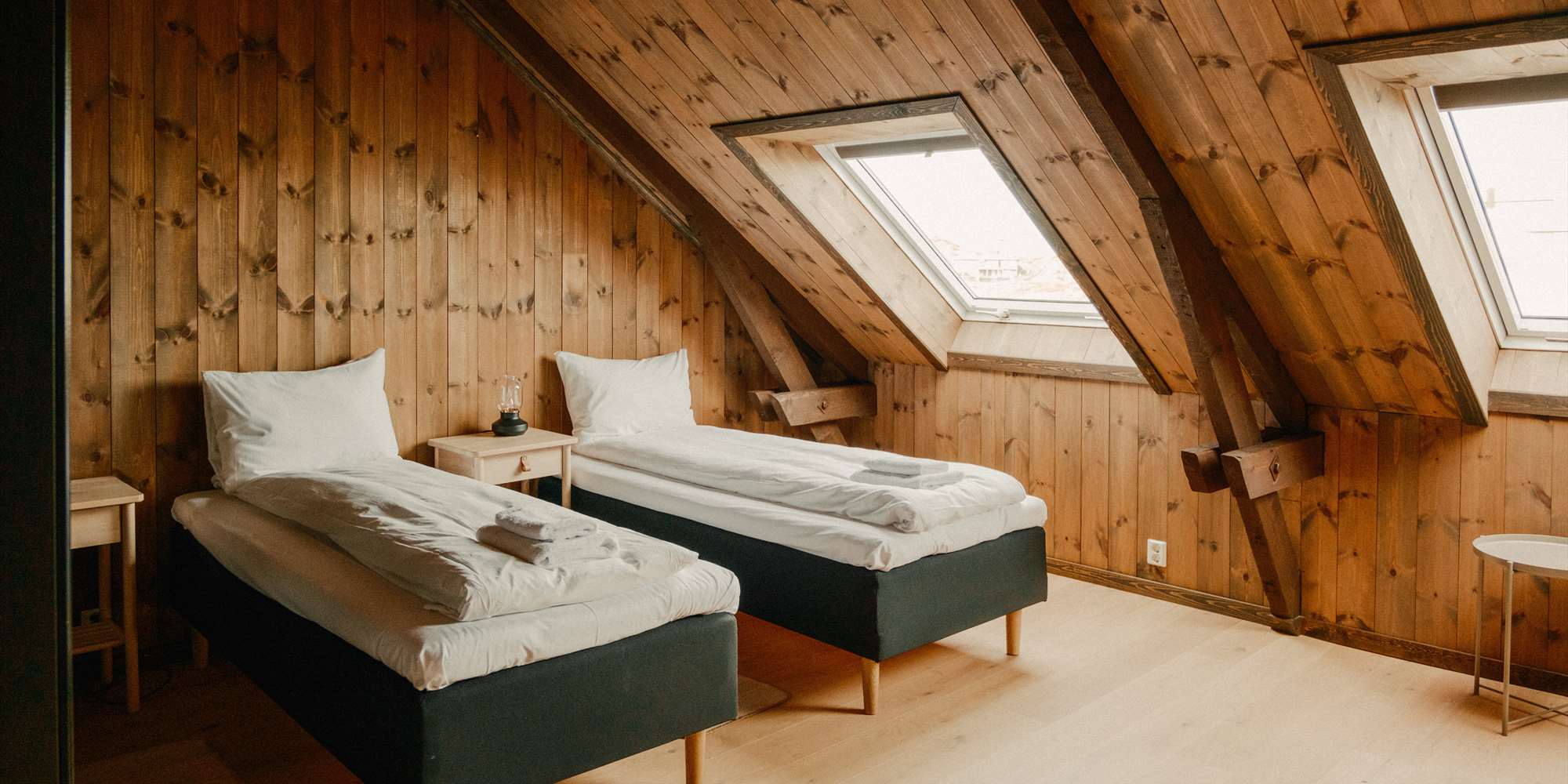 Fedje Island AS tilbyr overnatting i store leiligheter med tre soverom, kjøkken, stue, bad, balkong og sjøutsikt på den gamle sardinfabrikken Fab8.